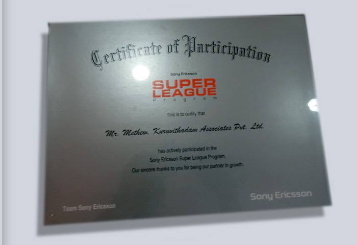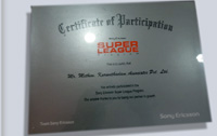 Certificate of Participation in Sony Ericson Super League Program