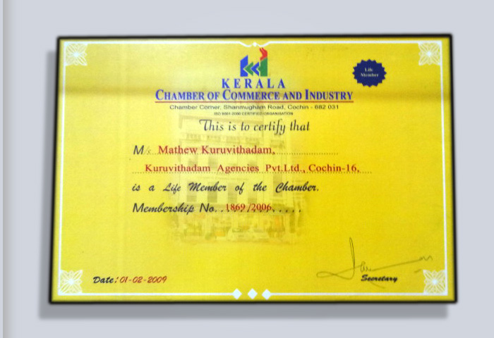 Certificate of Membership, Kerala Chamber of Commerce and Industry
