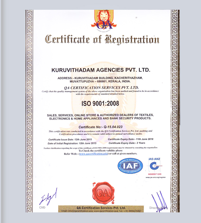 ISO 9001:2008 certificate