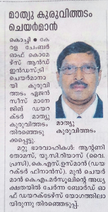 Mathew Kuruvithadam Elected as Chairman of Kerala Chamber of Commerce and Industry